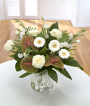 Moody green Anthuriums bring a touch of the exotic to this mainly white bouquet. Please note this item arrives as a bouquet and does not include a vase.